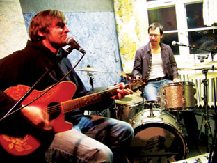 | 18.09.08 | Johannes an die Gitarre Die Studioaufnahmen zu "schrei deinen namen" und "wie hell sie scheint" sind fertig, wir haben uns gut vertragen, unser Mixer Big D. ist mittlerweile in den Urlaub geflüchtet und das Ganze hat eine Menge Spass gemacht... Ja, und wir begrüßen stolz den johannes in unserer Mitte und an der Gitarre. Allzeit die richtigen Griffe. Auf der Bilderseite gibts neue Fotos und einen Bildschirmhintergrund zu "schrei deinen namen" mit dem aktuellen "schreihals" von Brendan. Außerdem könnt ihr mal auf die myspace-seite schaun, dort kann man nen kurzen Akkustikssong von Steffi und Tino hören. Lagerfeuerstimmung, wir sind sehr überrascht. |